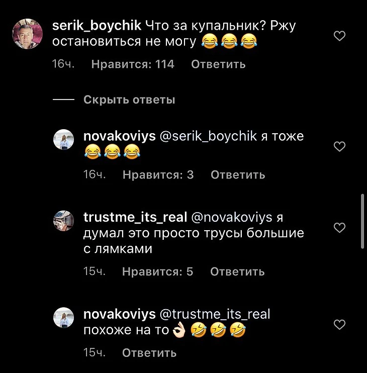 Ответ Азаренко не заставил себя долго ждать. Через несколько часов Виктория опубликовала новое фото. «Поскольку люди высмеяли мой купальник, и я очень забочусь о том, что думают другие, буду ходить на пляж вот так... Это лучше? 😂 (Я надеюсь, тролли поймут мой сарказм 😂)», – написала теннисистка.
