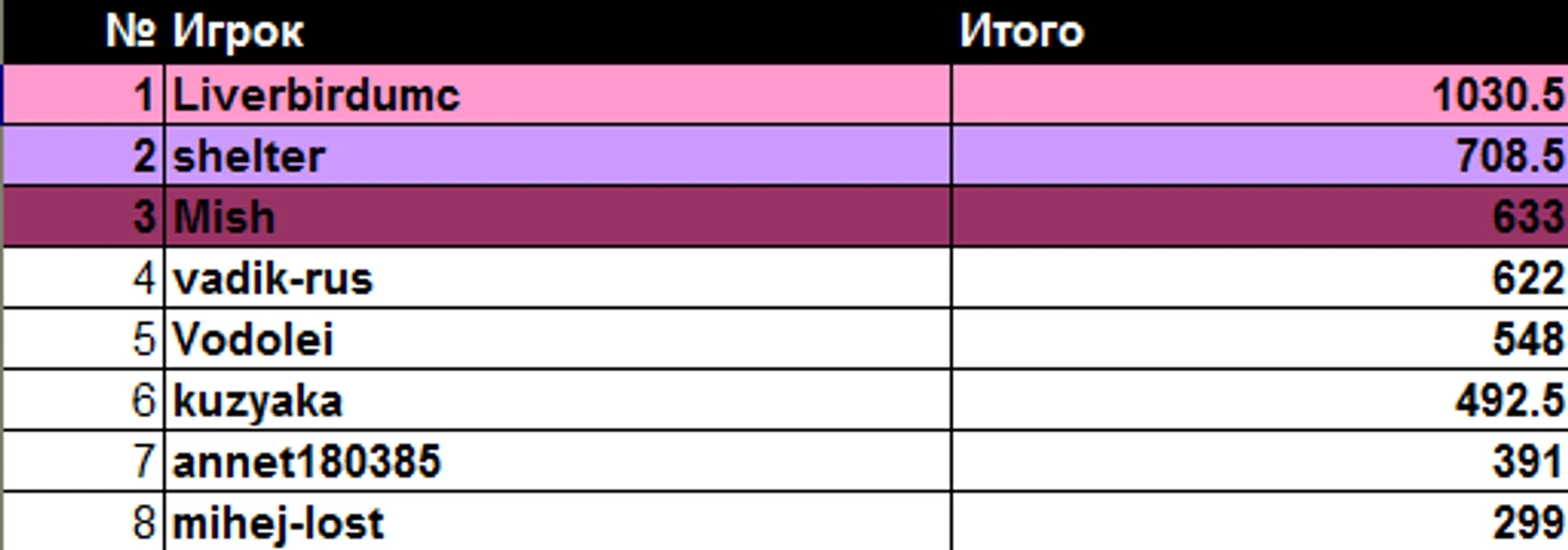 Победителем Итогового Турнира года становится Liverbirdumc! Поздравляем!