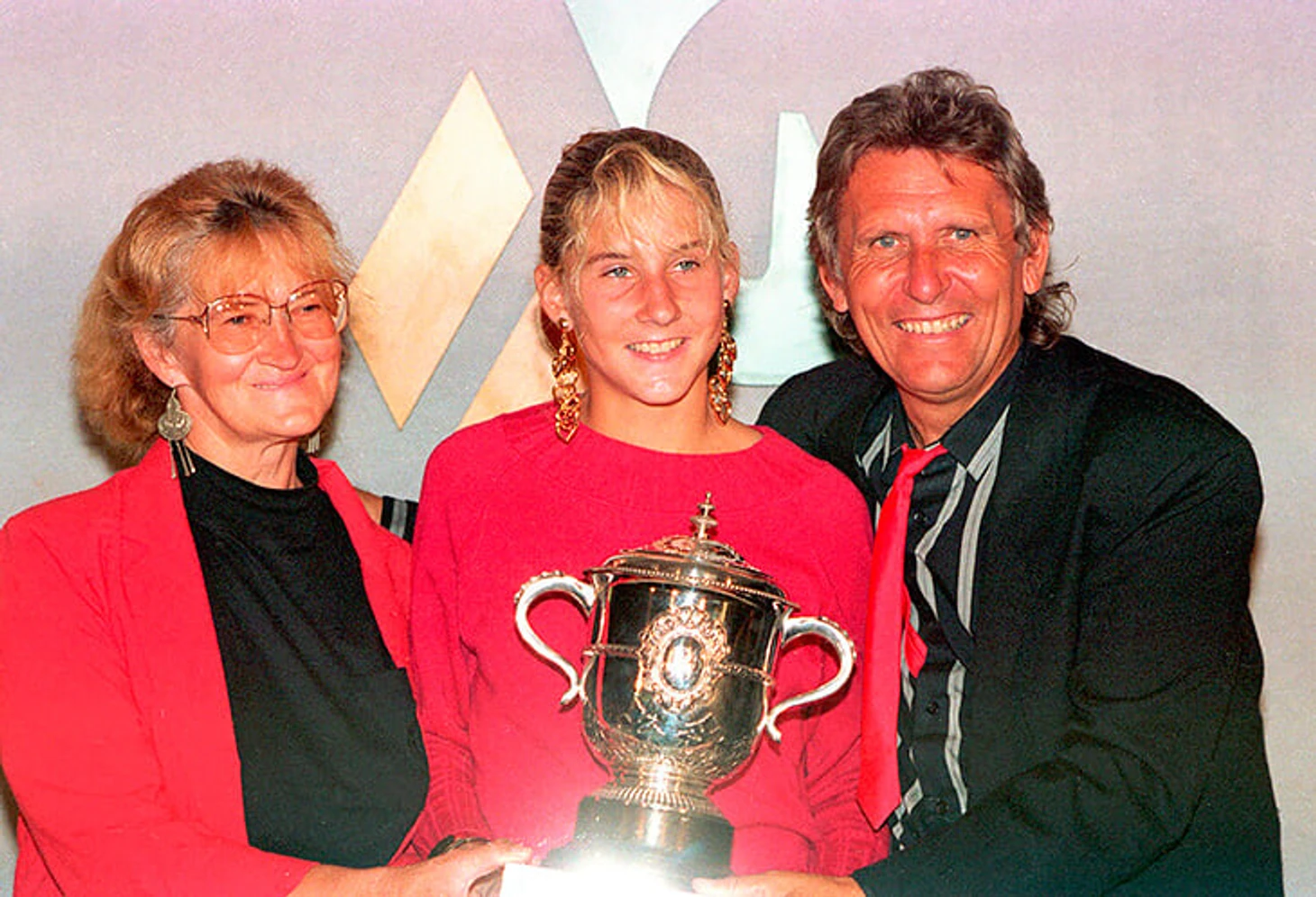 Самыми крутыми молодыми чемпионками того периода (и всей истории тенниса вообще) были Штеффи Граф и Моника Селеш. Граф выиграла первый «Шлем» в 1987-м, когда ей было 17 лет. А на следующий год она сделала то, чего не удавалось никому в истории – собрала золотой Большой шлем, взяв все четыре ТБШ и Олимпиаду. Карьеру она закончила с 22 «Шлемами» (третий результат в истории) и 377 неделями на первой строчке (рекорд WTA).