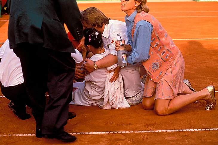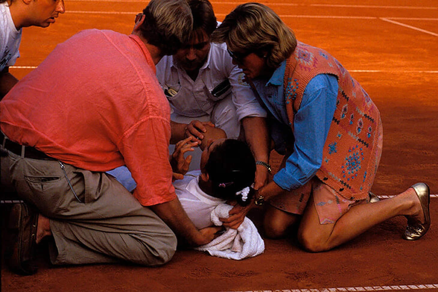 30 апреля она играла четвертьфинал против Магдалены Малеевой, вела 6:3, 4:3, когда во время смены сторон безработный токарь по имени Гюнтер Пархе вытянулся из-за барьера между трибунами и кортом и ударил ее ножом в спину.