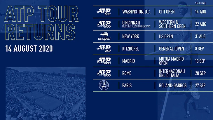 Календарь ATP тура после рестарта (минус Вашингтон)