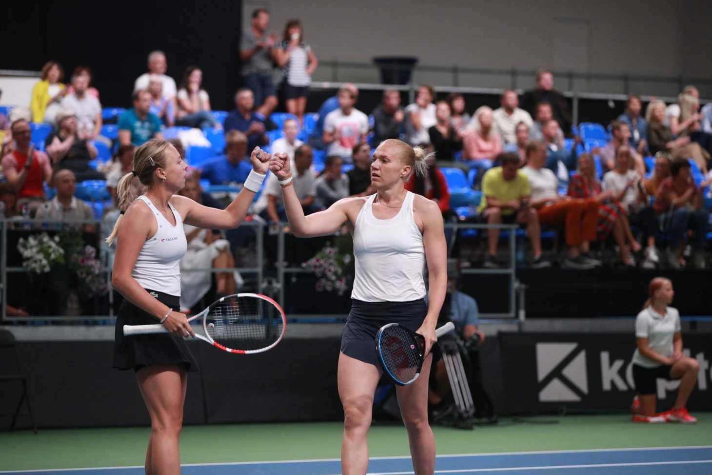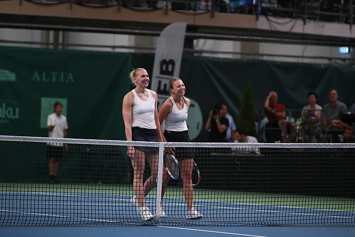 Равная борьба получилась в женской парной игре. Кайя Канепи и Анетт Контавейт обыграли Анастасию Севастову и Елену Остапенко - 4:6, 7:5, 10:7. Давно эстонские болельщики не видели как совместную тренировку двух лучших теннисисток сборной Эстонии, так и матч в паре. При яркой поддержке своих болельщиков и игре дома Анетт и Кайя показали великолепную игру. Счет в матче снова стал ничейным - 4:4.