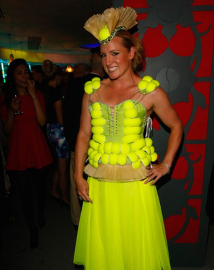 Похоже к тому же, что она хотела сделать наряд многофункциональным, и под мячами спрятана юбка из травы.