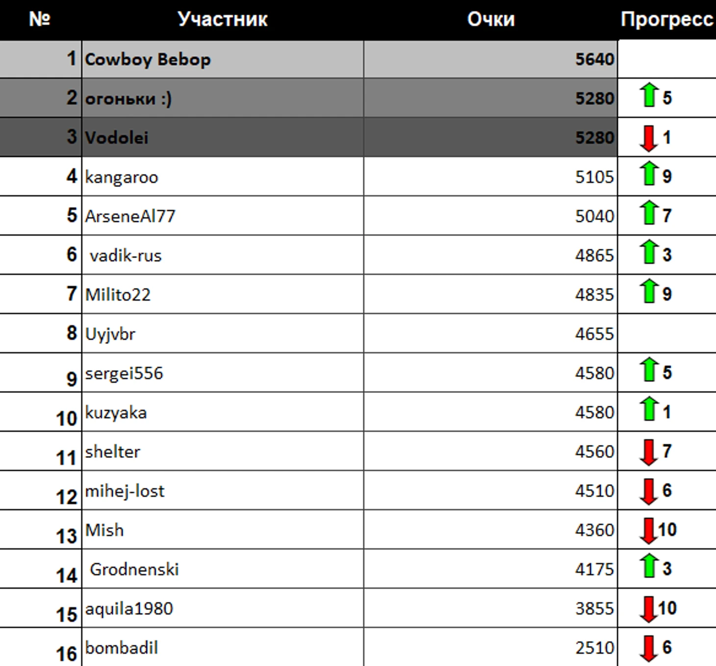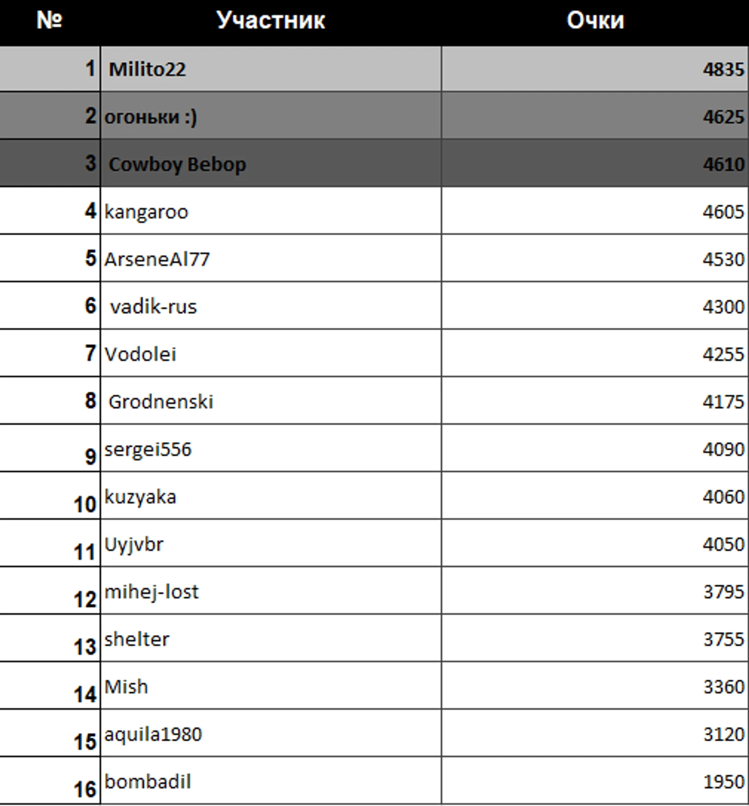 * Не забываем поздравлять чемпионов турнира в коментариях к посту ведь на их месте в любой момент можете оказаться и вы :)