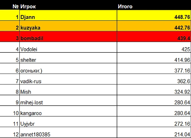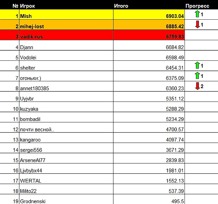 * Не забываем поздравлять чемпионов турнира в коментариях к посту ведь на их месте в любой момент можете оказаться и вы :)