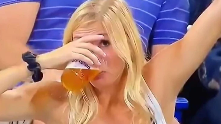 Ближе к концу матча, когда камера вернулась к девушке, она защитила свои очки, несмотря на то, что пива в тот момент у нее не было (забрала у соседа).