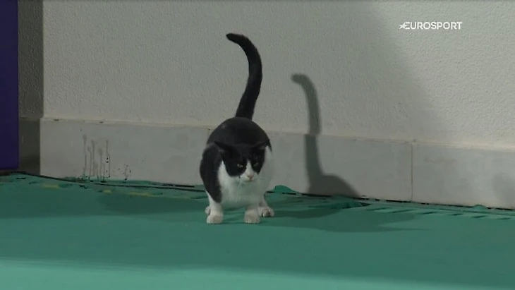 Турнир начался матчем Дарьи Касаткиной против Ван Цян, и уже после второго розыгрыша операторы обнаружили на трибунах симпатичную черно-белую кошку.