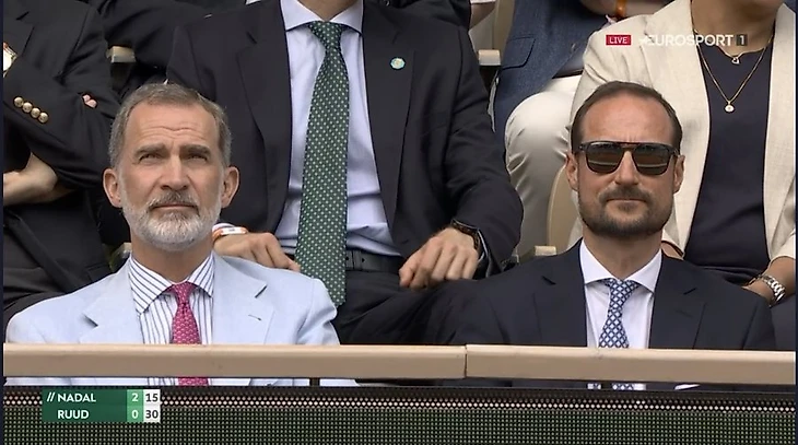 Были замечены: король Испании и принц Норвегии (на фото), Роберт Левандовски, актеры Сиена Миллер, Хью Грант и Майкл Дуглас. Не видно только Роджера Федерера, которого так обещали перед матчем.
