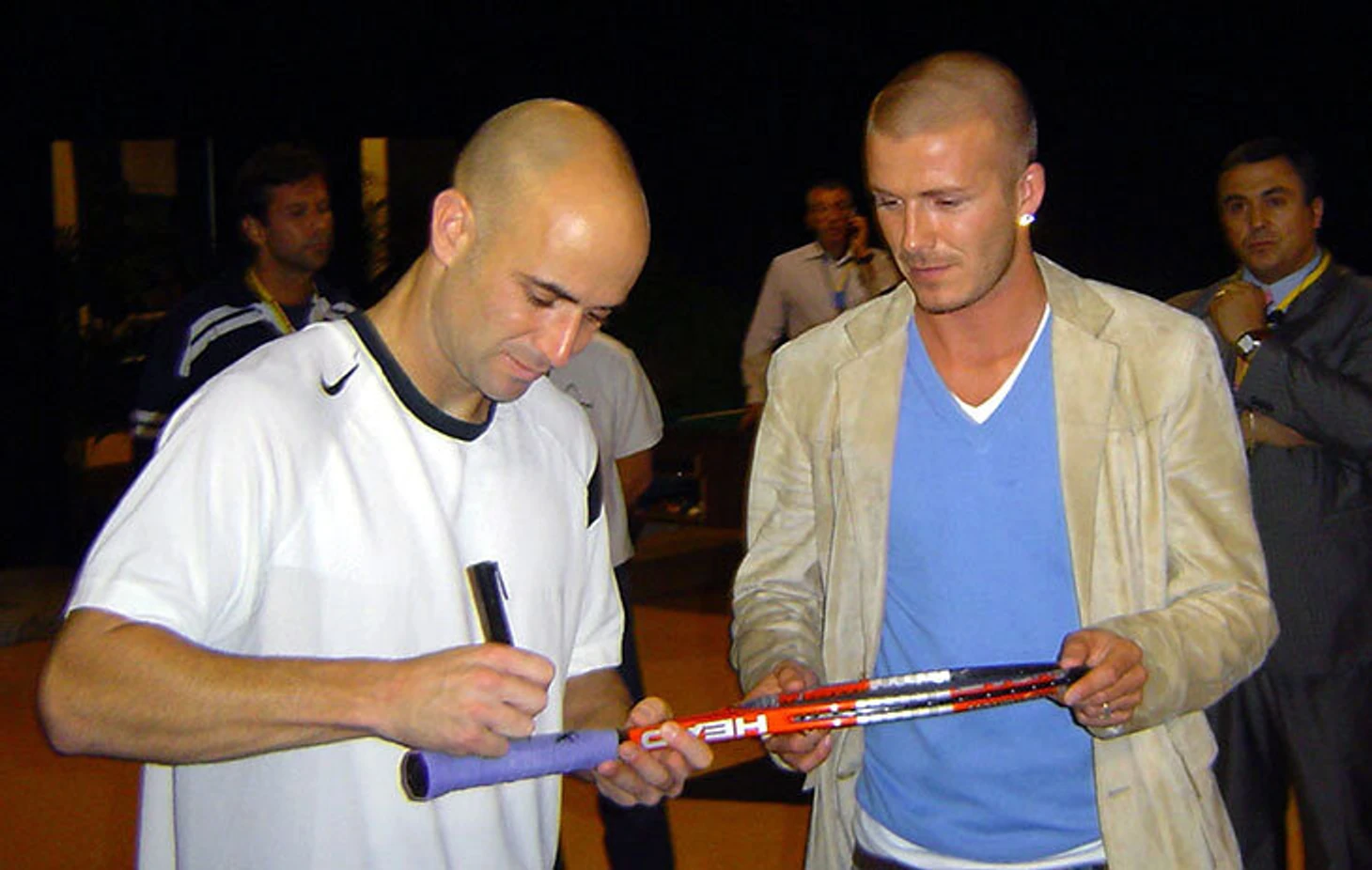 Главным теннисным кумиром Дэвида был американец Андре Агасси − экс-первая ракетка мира, обладатель Золотого шлема (все турниры «Большого шлема» + олимпийское золото), а сейчас − тренер-консультант. Бекхэм и Агасси познакомились все на том же мадридском «Мастерсе», но уже в 2004 году. Американец в четвертьфинале победил испанца Томми Робредо, а Бекхэм не постеснялся подойти после матча ради автографа. Агасси подписал ракетку.