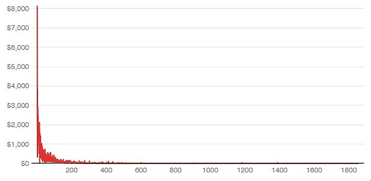 Посмотрим на кривую Распределения призовых выплат среди теннисистов в 2010г.