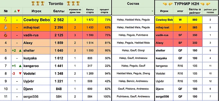 В Торонто также хорошо выступили другие лидеры сезона: Михей, Вадик и Алексей заняли следующие три места. Они же, вместе с победителем Ковбоем, добрались до полуфиналов H2H.