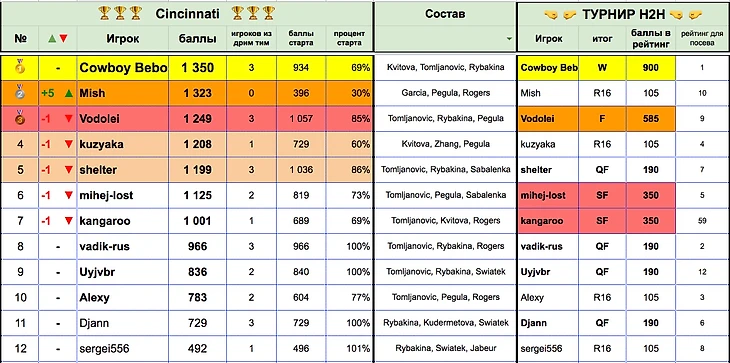 В Цинциннати отметим хорошее выступление Миша и Водолея (который дошел до финала H2H), при в целом неудачном для игроков наборе очков – примерно в два раза ниже, чем на аналогичном турнире в Канаде.