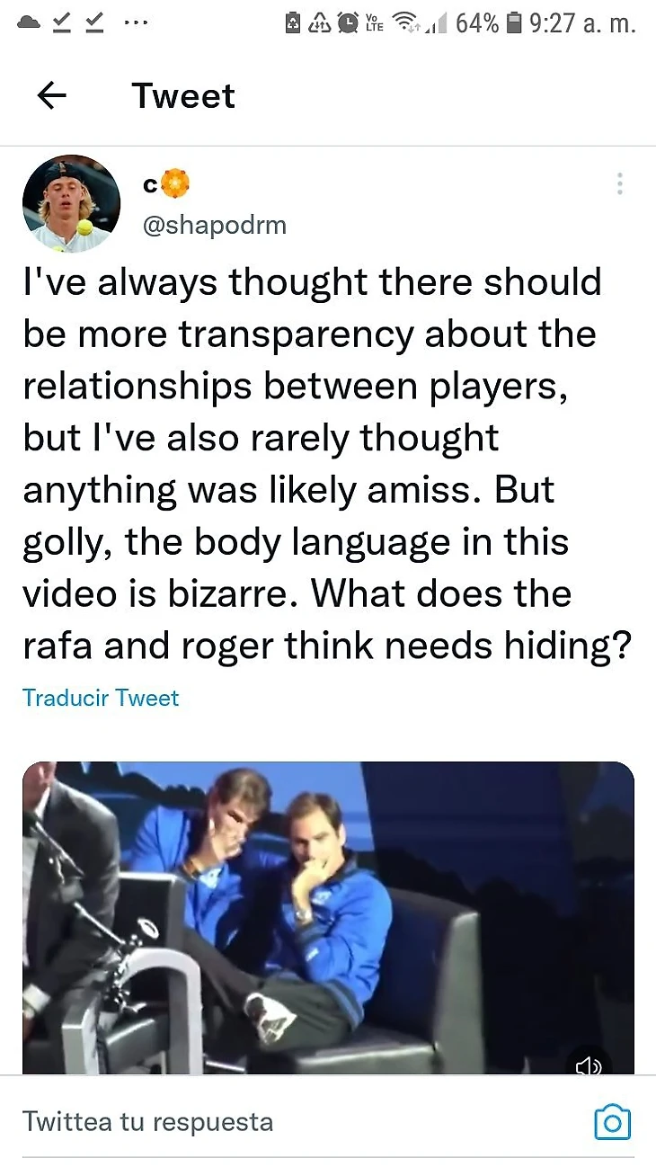 «Я всегда считал, что нужна большая прозрачность касательно отношений между игроками, но у меня редко возникали какие-то подозрения. Но ух, поведение на этом видео выглядит так нелепо. Что Рафа и Роджер считает нужным скрывать?»