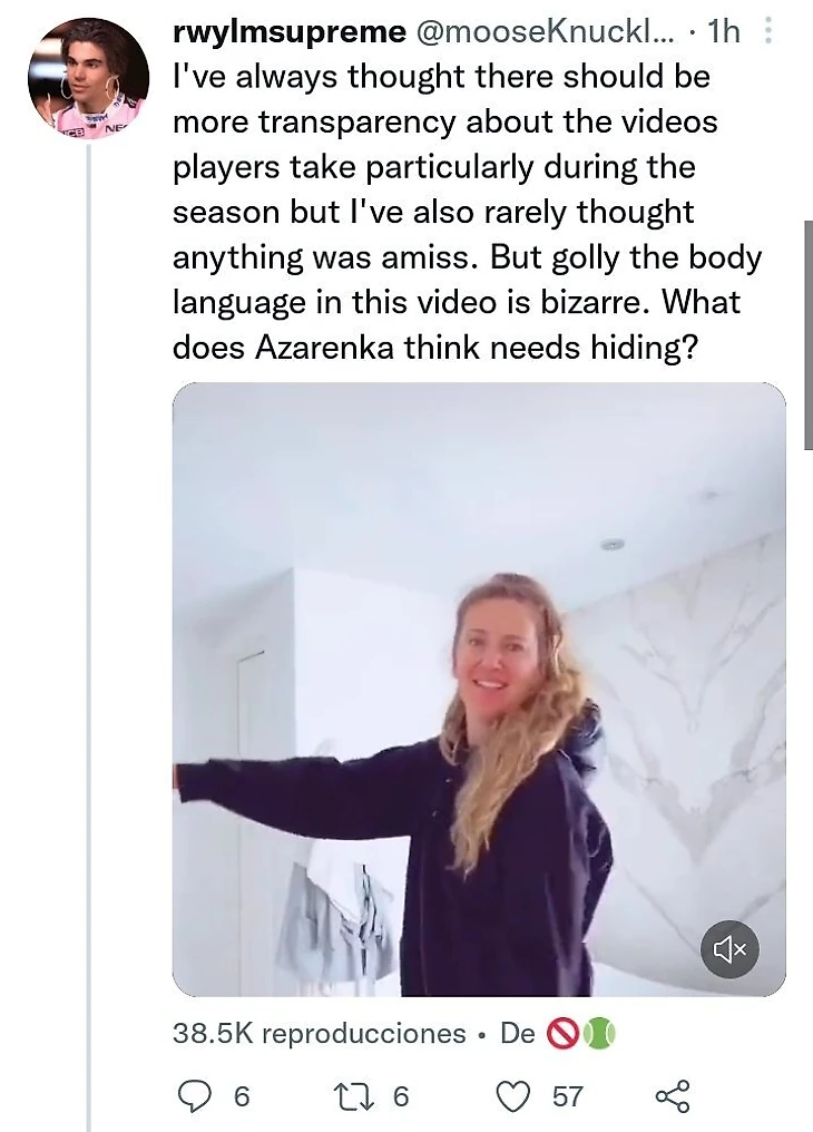 «Я всегда считал, что нужна большая прозрачность касательно видео, которые снимают игроки – особенно по ходу сезона. Но у меня редко возникали какие-то подозрения. Но ух, поведение на этом видео выглядит так нелепо. Что Азаренко считает нужным скрывать?»