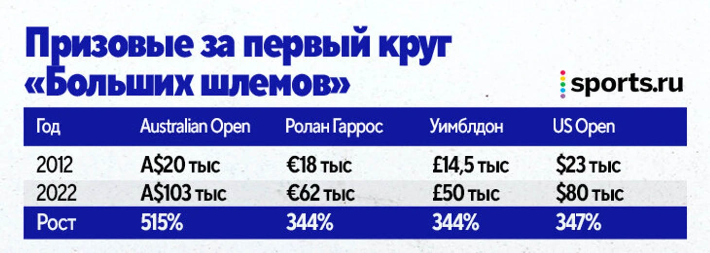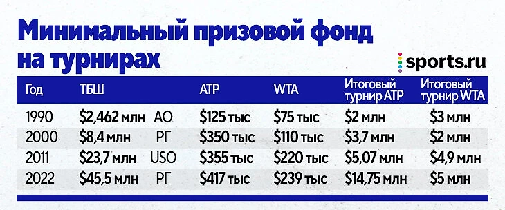 Нынешний стремительный рост призовых обусловлен тем, что турниры заставили выделять игрокам большую долю прибыли. Процесс активизировался в 2012-м с турниров «Большого шлема».