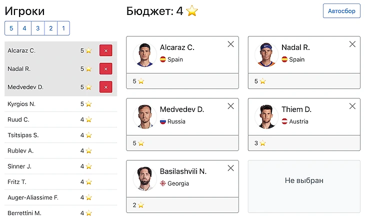 В вашей команде должно быть определённое количество игроков, стоимость которых от 1 до 5, бюджет на команду ограничен. Создавать команду можно до начала первого круга. Потом можно будет поменять свою команду, если захотите взять других игроков. Но сделать это можно только до начала турнира. Один пользователь может создавать несколько команд, но не более 3 в одном турнире. Так вы можете попробовать разные тактики и подходы.