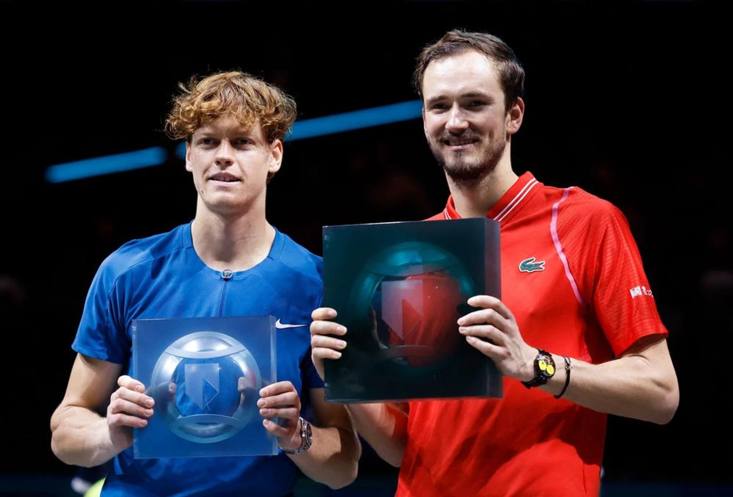 Д. Медведев и Я. Синнер с трофеями турнира в Роттердаме. Источник: beinsports.com