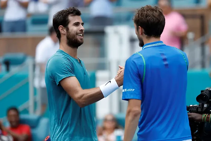 На турнире категории Мастерс в Майами завершились полуфинальные матчи. В российском полуфинале между Даниилом Медведевым и Кареном Хачановым развернулась серьезная борьба за выход в главный матч соревнования. В первом сете соперники играли на равных, при этом демонстрируя красивую игру с обилием укороченных и крученных ударов. Реализовав по брейку, россияне перевели игру на тай-брейк, в котором более собранным оказался Медведев. Во втором сете Хачанов перестроил свою игру и, сделав брейк, повел в счете 3:0. Даниил, напротив, стал больше ошибаться и как будто бы испытывать давление, что не дало ему отыграть брейк и обернулось проигрышем сета. Но Медведев, как более классный теннисист, нашел в себе силы нарастить темп и атакующие действия в решающем сете, а Карен оказался к этому не готов. В результате Даниил оказался сильнее со счетом 7:6(5) 3:6 6:3.
