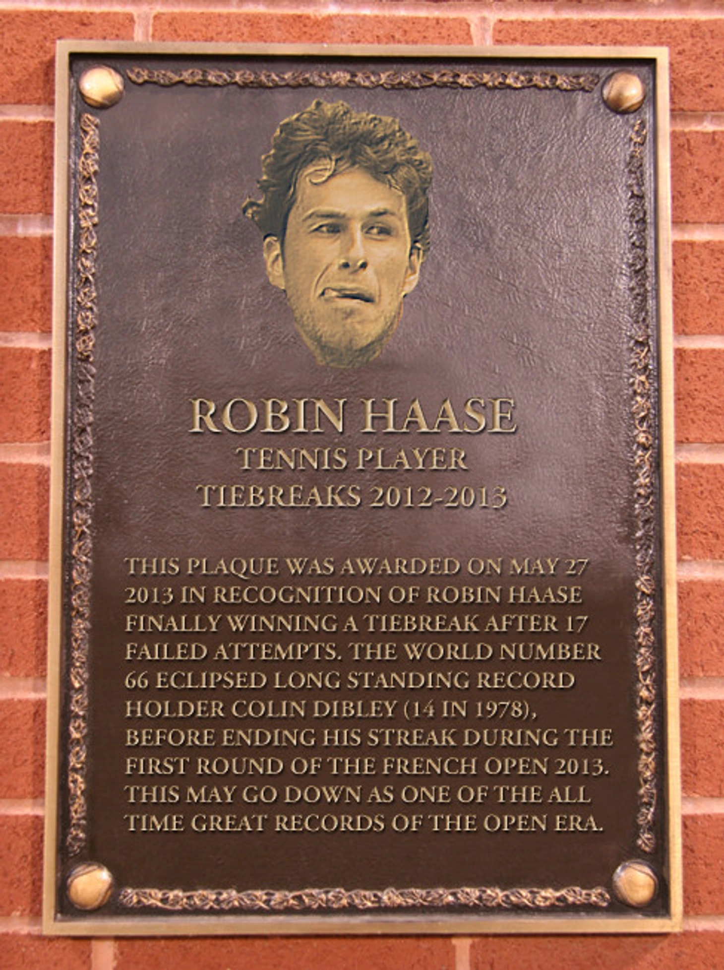 Казалось бы, что выигранный теннисистом тай-брейк не должен становиться большим событием. Но в случае с тай-брейком второго сета матча Робина Хаасе против Кенни де Шеппера все было совсем не так. Дело в том, что выиграв его, Хаасе прервал рекордную серию из 17 подряд проигранных тай-брейков. За такой успех он даже удостоился выдуманной памятной таблички.