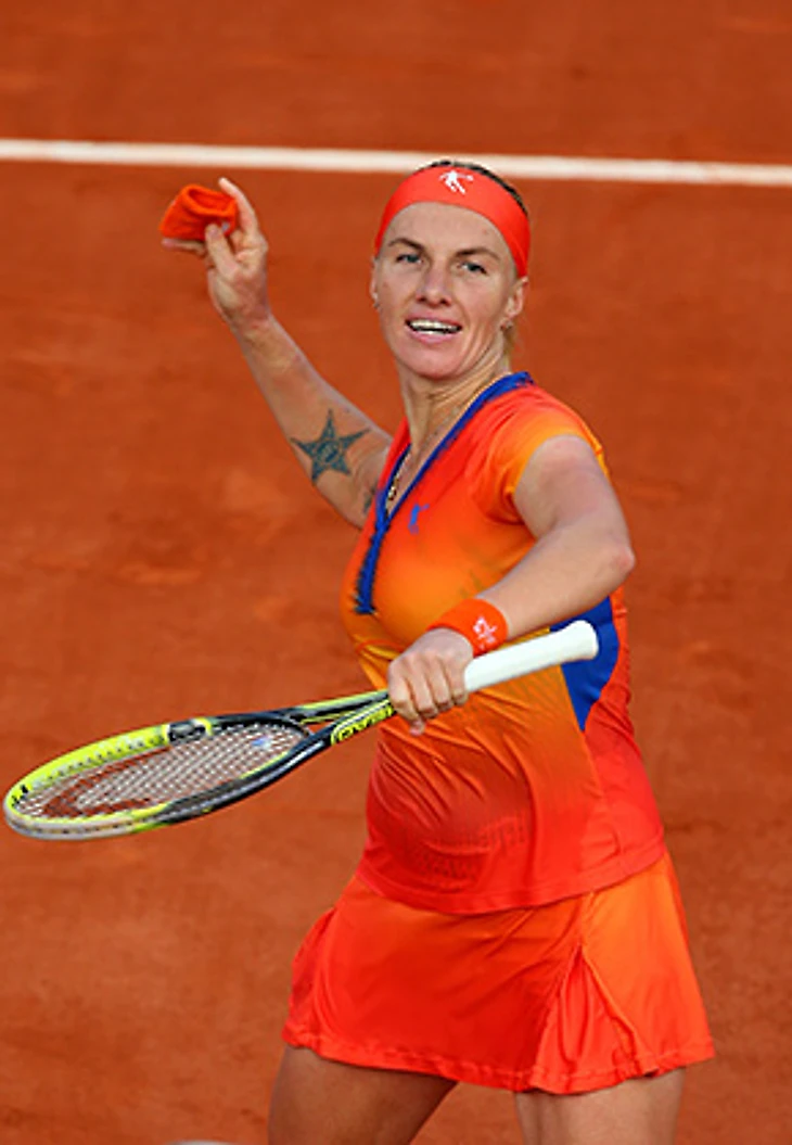 – С прошлого года играю в форме китайской фирмы, и я ей очень довольна. Они делают все возможное. Перед каждым турниром присылают несколько вариантов коллекции. Перед «Ролан Гаррос» у меня был выбор из пяти цветов – я остановилась на оранжевом для одиночного разряда и зеленого для парного. Вообще, так получилось на самом деле, что с самого начала сезона я играла в оранжевом. Хорошо играла – решила не менять. Но если мне вдруг скажут, что я буду выигрывать в нижнем белье – я буду играть в нижнем белье. Мне все равно – главное, чтобы я выигрывала.