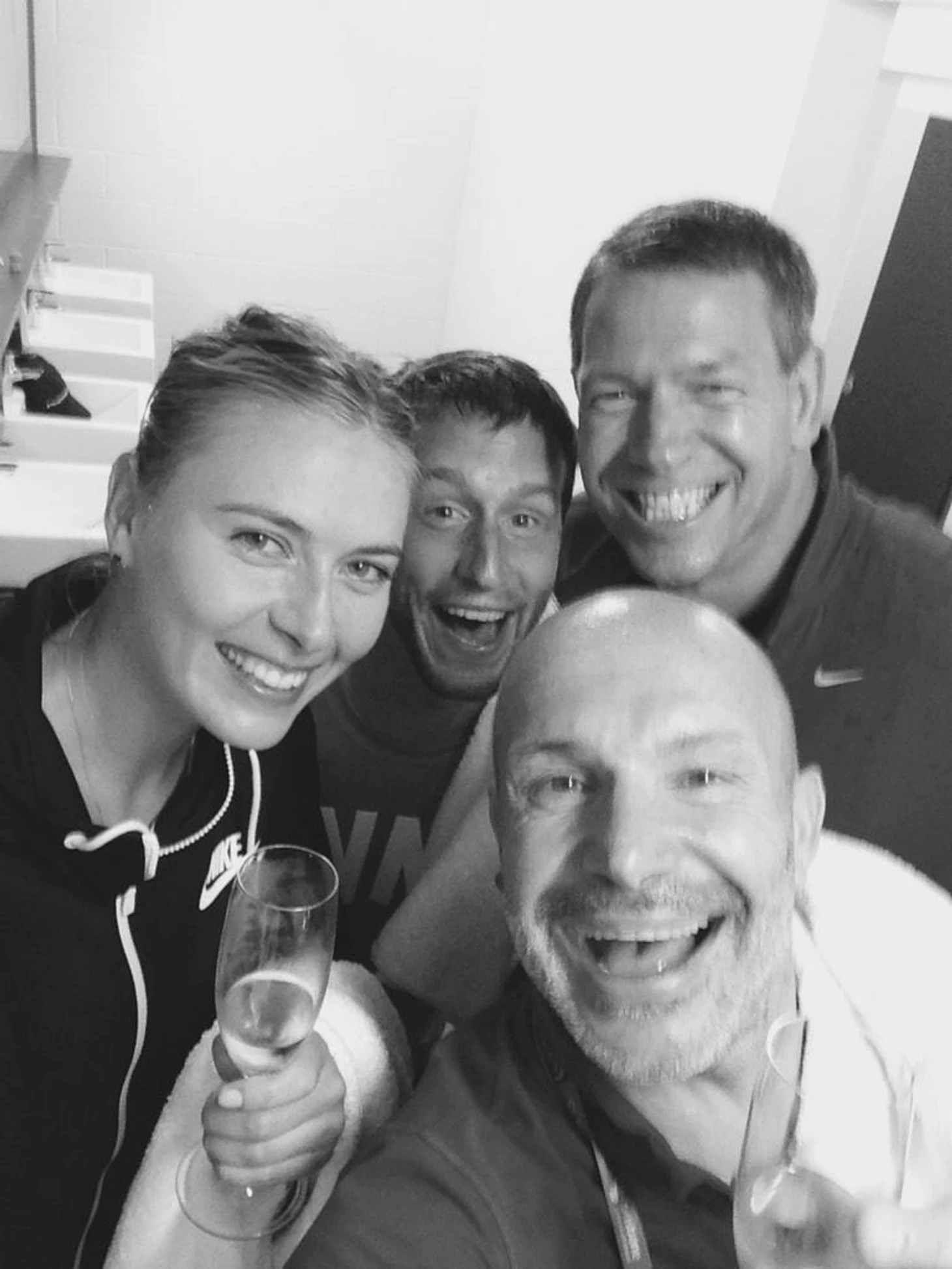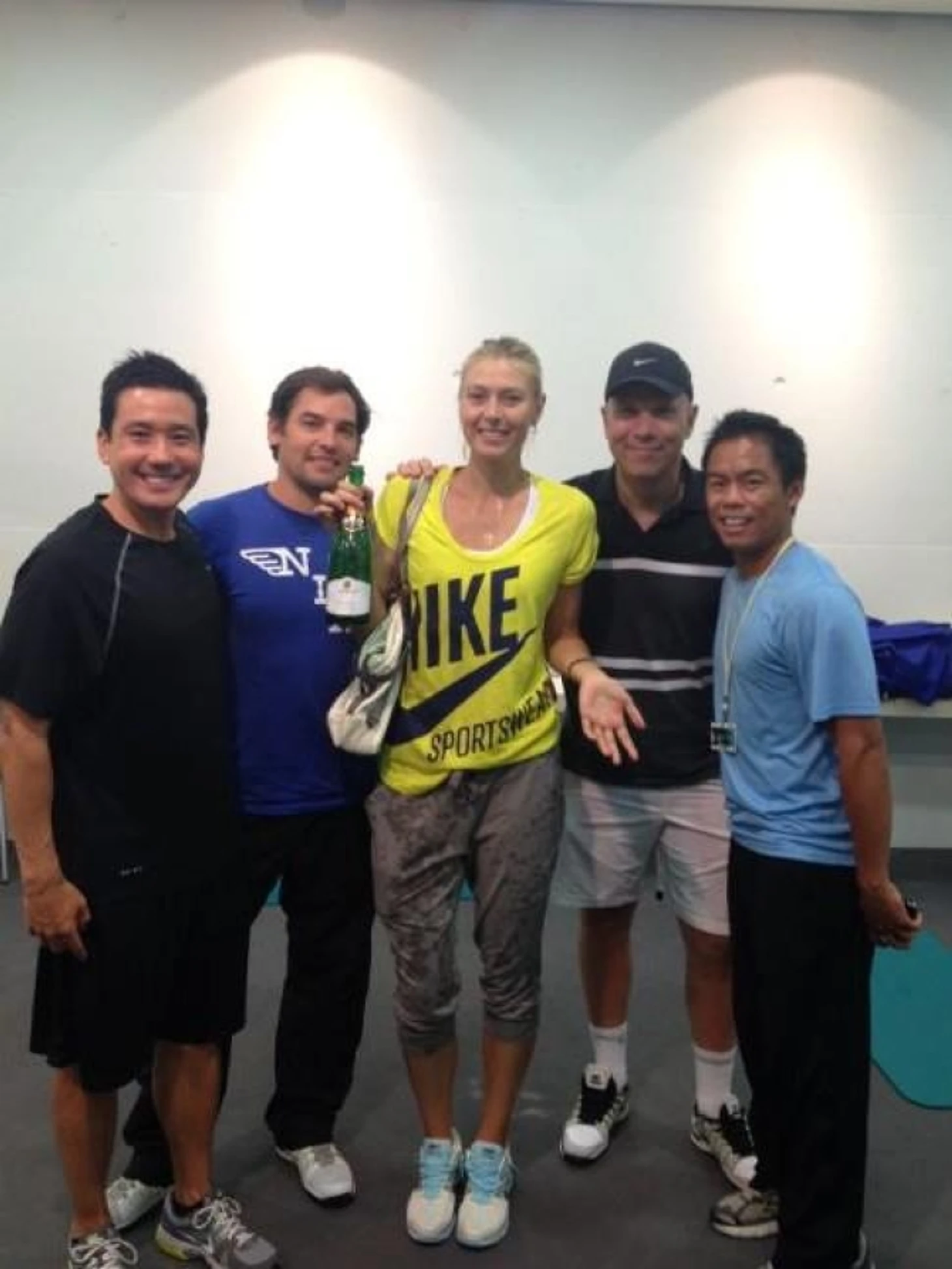 В 2013-м году с Шараповой в качестве физиотерапевта стал работать бывший регбист из Франции Жером Бьянши (на фото внизу справа). Сообщается, что контракт с ним заключен на два года с возможностью продления.