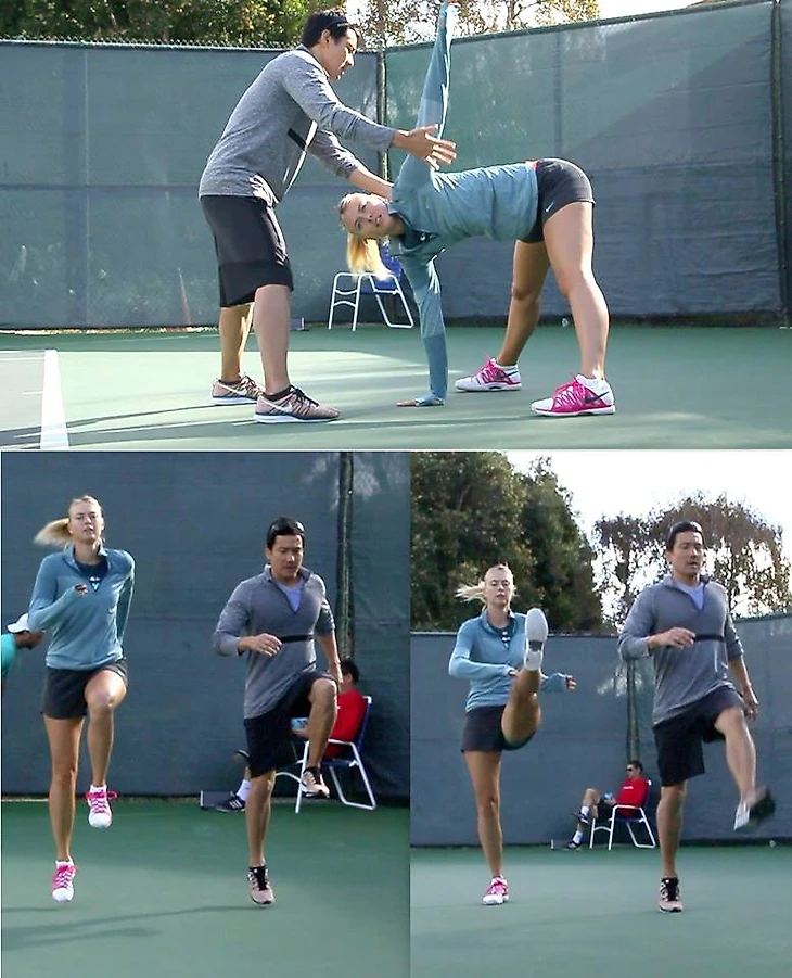 Японский физиотерапевт и специалист по физической подготовке начал работать с Марией в декабре-2012. И по словам самой россиянки, именно работа Накамуры стала необходимым элементом ее грунтовых успехов. Японец, несколько лет работавший в Австралии, а до этого тренировавший, в том числе, Дженнифер Каприати и Томми Хааса, научил ее двигаться на скользком грунте. «Движение на грунте сильно отличается от движения на других покрытиях. И работа с Накамурой позволила мне прочувствовать его». А ведь раньше она себя на грунте сравнивала с коровой на льду.