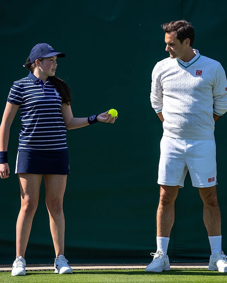 Кэтрин и восьмикратный чемпион «Уимблдона» Роджер Федерер пообщались с детьми и попробовали повторить некоторые упражнения. Федереру не привыкать – в детстве он был болбоем на турнире в Базеле.