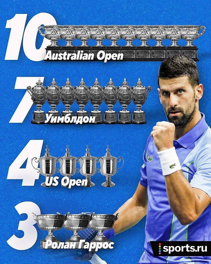 ● Серб выиграл уже 24-й «Большой шлем». Он обновил собственный рекорд и оторвался от Рафаэля Надаля уже на два титула.