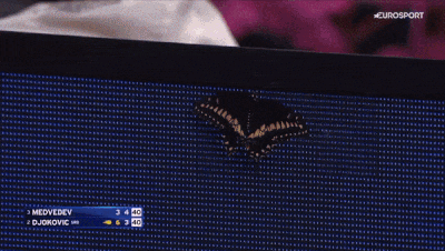 У бабочек на теннисных кортах разные судьбы. Например, однажды Рафаэль Надаль на «Уимблдоне» очень мило спасал одну особу и не давал продолжить игру, пока не переместил ее в безопасное место. А Энди Маррей как раз тут на US Open-2016 отмахивался от бабочки ракеткой, несколько раз попал по ней, и оператор поймал потом кадр с травмированным насекомым – но другого вида.