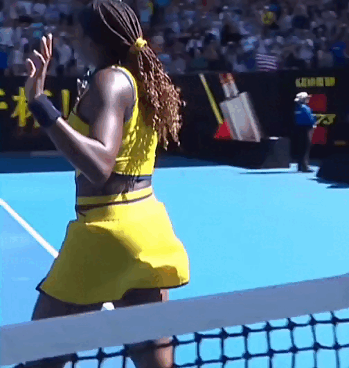 На эту гифку можно смотреть бесконечно. Сверчок идет по корту на Арене Рода Лэйвера во время матча Соболенко – Крейчикова.