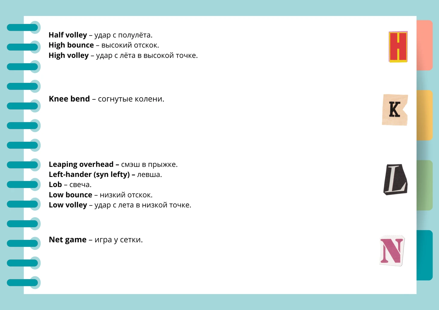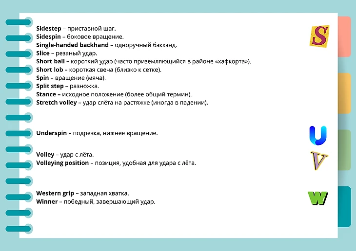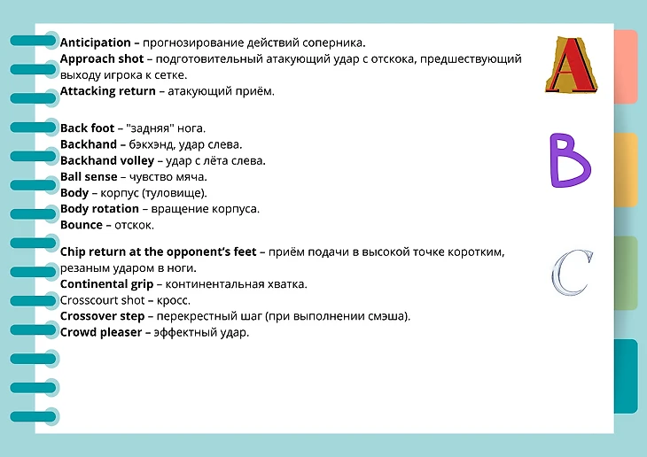 Продолжение рубрики «Словарь теннисных терминов». Тема: Techniques (игровая техника).