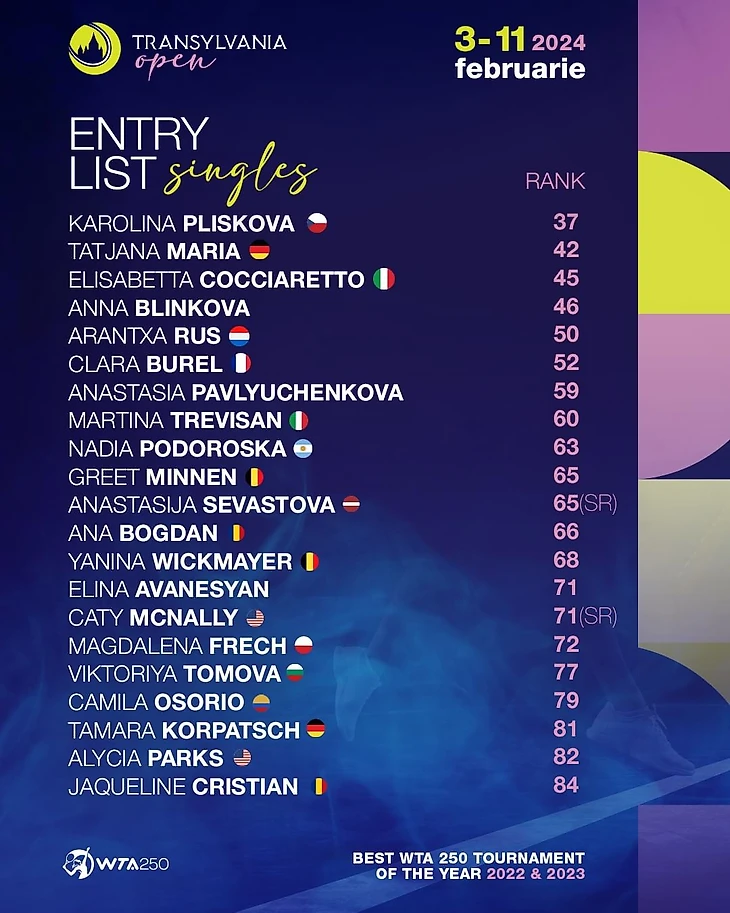 Турнир пройдёт с 3 февраля по 11 февраля 2024 г. в Клуж-Напоке, Румыния. Тип покрытия: хард. В одиночном разряде сразятся 32 теннисистки, а в парном 16. Общий призовой фонд: $ 267 082. Действующие чемпионки: Тамара Корпач в одиночном разряде, Джил Тейчманн и Джуди Бюрредж в парном. В турнире примут участие три россиянки: Эрика Андреева, Анастасия Павлюченкова и Элина Аванесян.