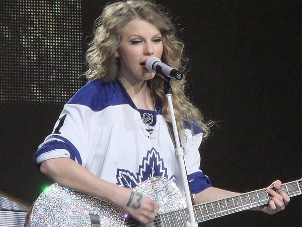 Вообще, это вполне обычное дело для поп-звезд – что-то вроде дани уважения городу, в котором они выступают. Поэтому Свифт играла в джерси «Торонто».