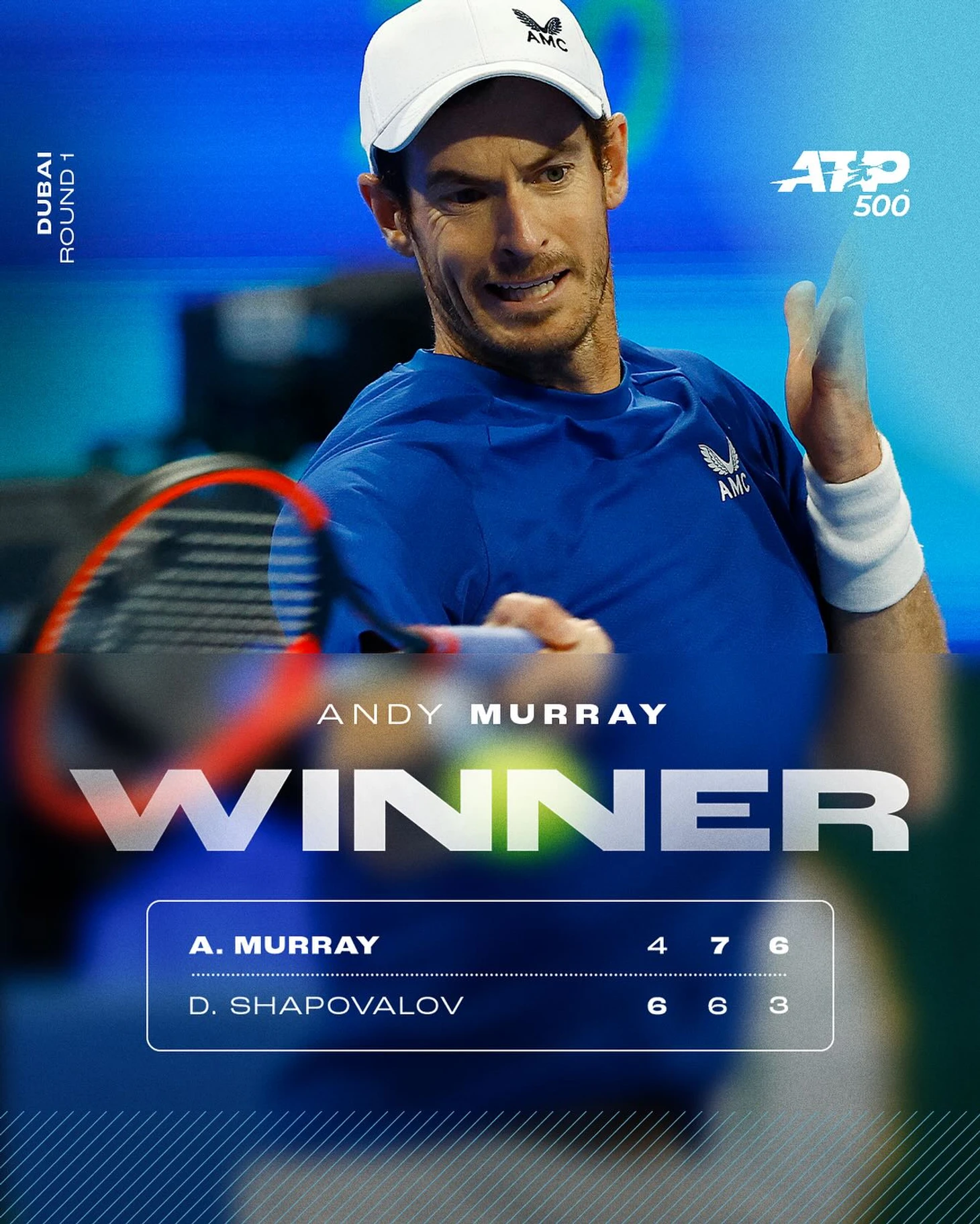 Сэр Энди Маррей вчера завоевал 500-ю победу на харде на турнире в Дубае, которая стала 735-й за всю карьеру. По общему числу побед он занимает 14-ю позицию среди теннисистов Открытой Эры и третий среди действующих игроков (выше него Новак Джокович с результатом 1094 победы и Рафаэль Надаль 1070 побед).