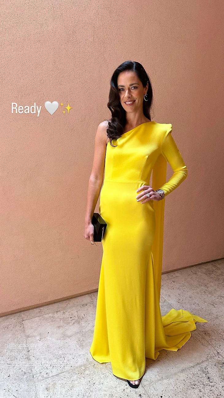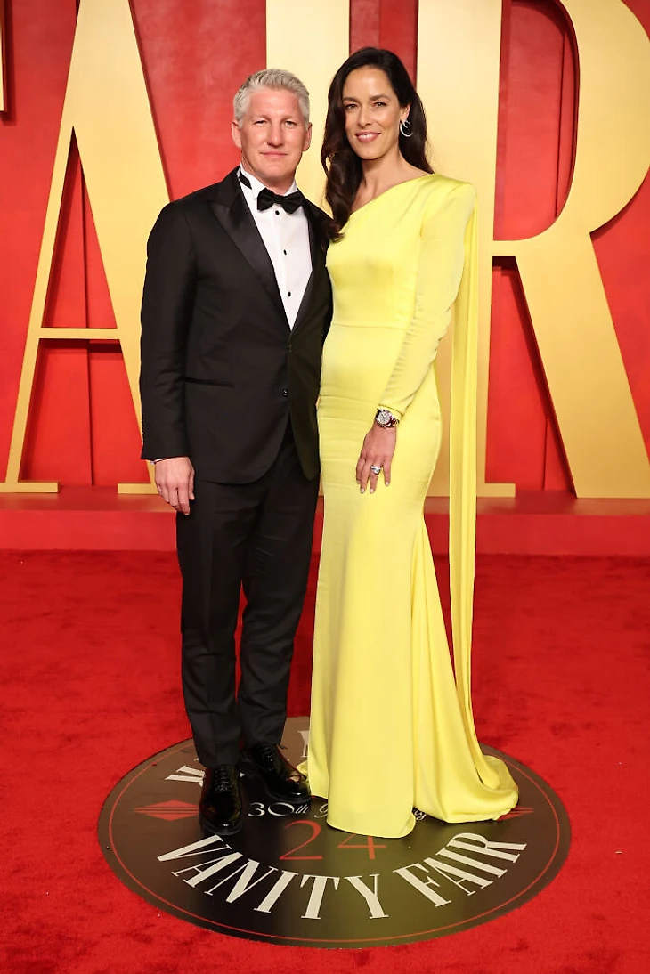 Вторую половину привела на вечеринку и экс-первая ракетка мира Ана Иванович – она пришла с мужем Бастианом Швайштайгером, чемпионом мира по футболу и обладателю примерно всех клубных титулов. Ана была в ярко-желтом платье с кейпом австралийского бренда Alex Perry. Как и Федерер, как лицо Rolex она была в часах марки.