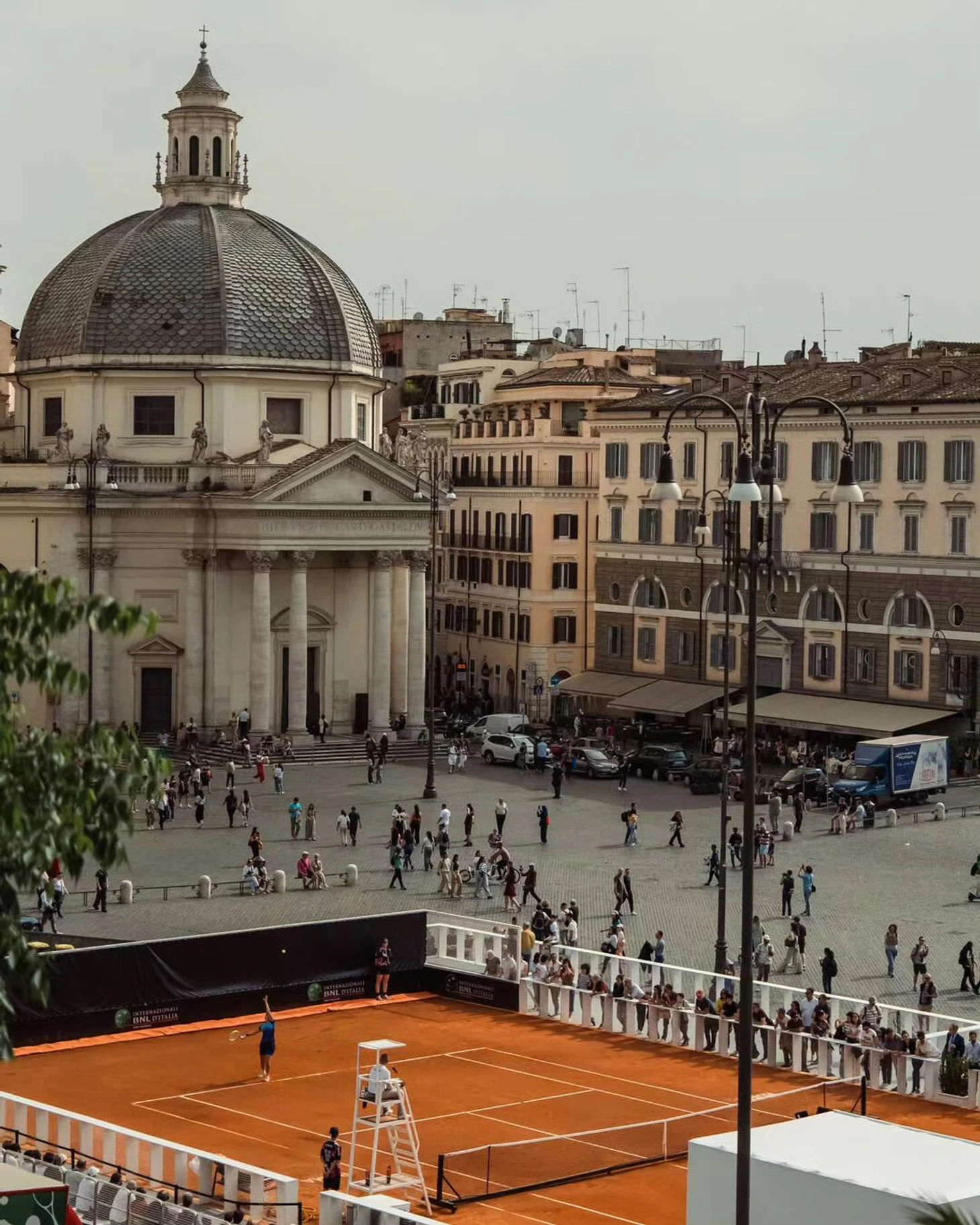 Против теннисной инициативы выступали в частности защитники городской среды Codacons, но проект корта на Пьяцца-дель-Пополо все-таки реализовали: поп-ап корт построили за неделю до турнира, и он останется до его окончания.
