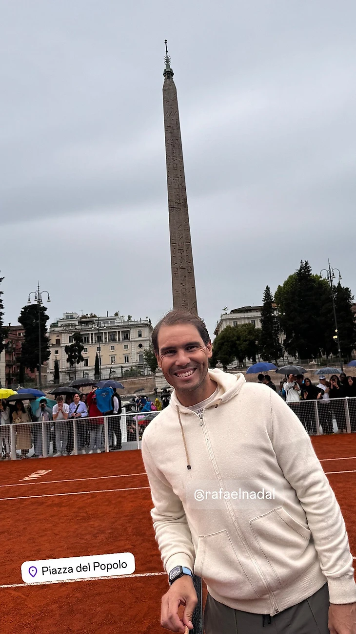 В среду Рафаэль Надаль должен был провести на дель-Пополо открытую тренировку. Ее отменил дождь, но испанец, приехавший в Рим в качестве игрока в последний раз, пообщался с болельщиками.