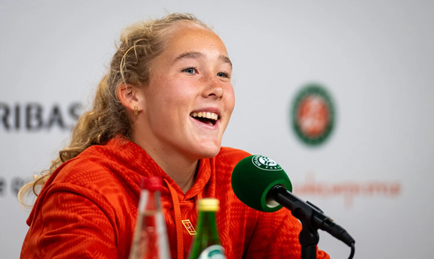 Мирра Андреева после выхода в полуфинал «Ролан Гаррос» пришла общаться раньше, чем мы ее ждали – потому что они с Верой Звонаревой отказались от четвертьфинала в паре.