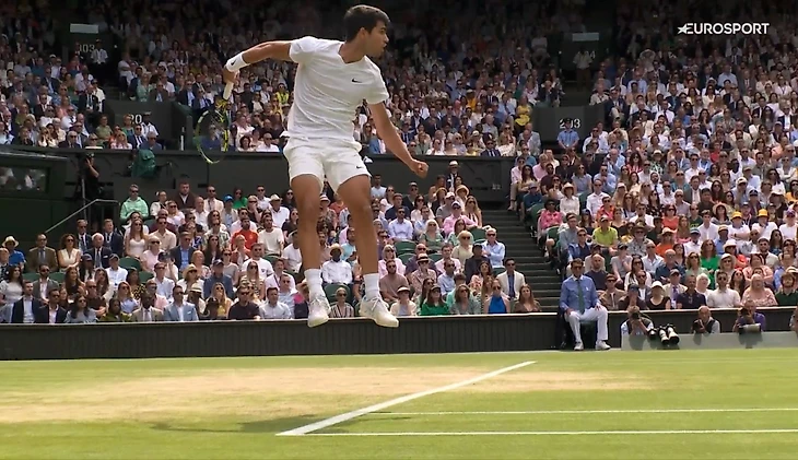 30:0 – гениальный удар с полулета от Алькараса. Выковырял мяч из шнурков и очень коротко перекинул через сетку.