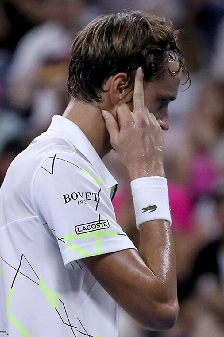 Турнир начался для Даниила – уже пятой ракетки мира – феерично, как бы продолжая эмоциональный вылет с «Уимблдона»: в первом круге в Нью-Йорке он получил штраф на семь с половиной тысяч долларов за брань, во втором – на две с половиной за сломанную ракетку. В третьем круге – еще на четыре тысячи долларов за брань и на пять за неспортивное поведение: Медведев выхватил полотенце из рук болбоя, бросил ракетку в сторону судьи на вышке, саркастически поаплодировал зрителям, болевшим за Фелисиано Лопеса, а потом и вовсе показал трибунам средний палец.