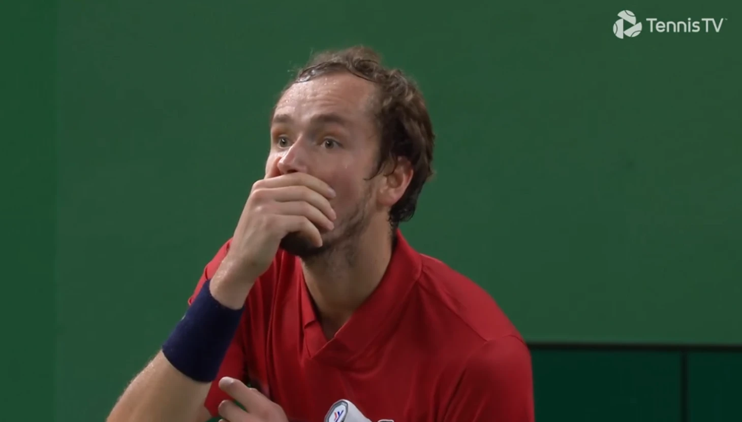 Во втором матче Даниил играл с Маттео Арнальди – и снова закипел. При счете 5:7, 1:0 он проиграл подачу – и выдал вот такой жест.