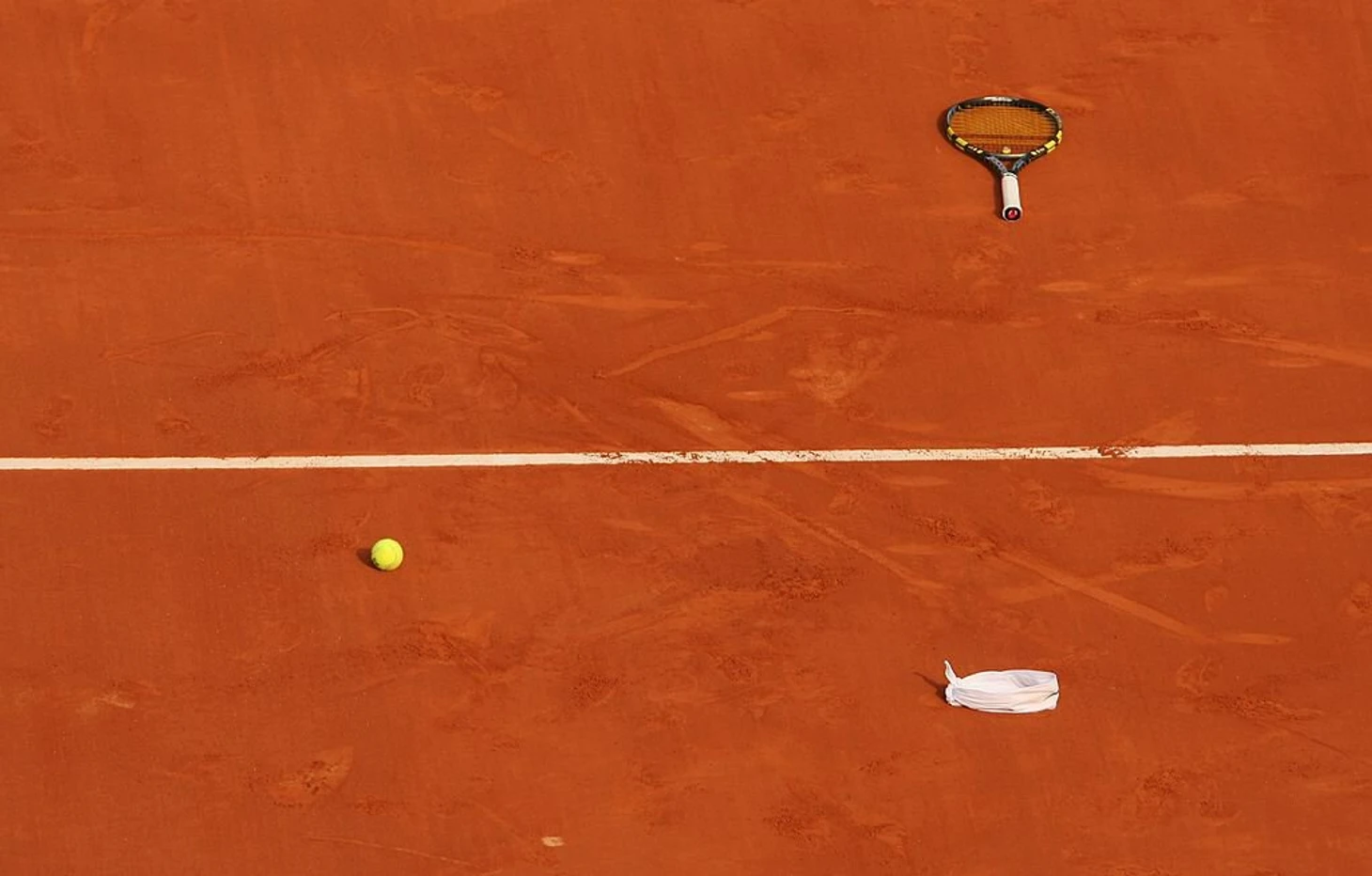 Вещи Надаля на корте после его победы в финале «Ролан Гаррос»-2006 и первой защиты титула в Париже