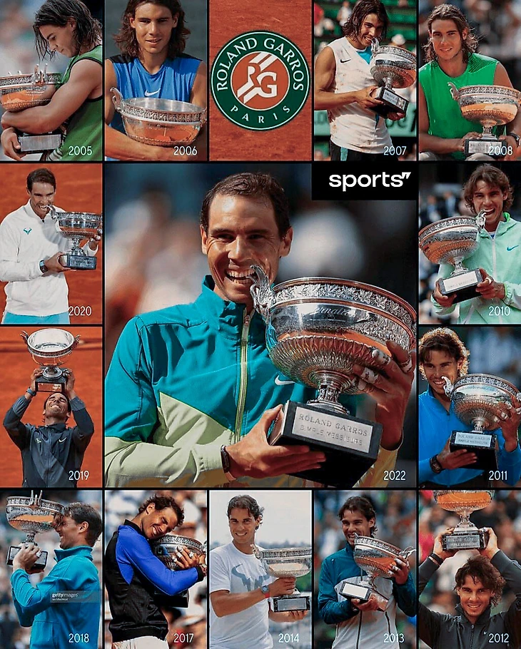 14 титулов «Ролан Гаррос» – рекорд с огромным отрывом;