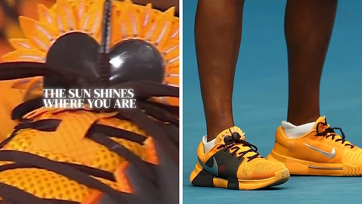 «Не знаю, успел ли кто-нибудь сделать крупный снимок моих кроссовок, но на боковой стороне написано: «Солнце светит там, где ты». Очевидно, что тема – подсолнух».