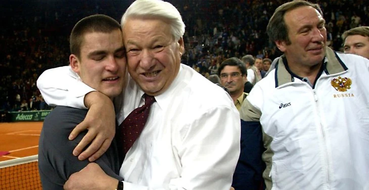 В 2002 году сборная России в Париже обыграла Францию (3:2) и впервые в истории выиграла Кубок Дэвиса. Ельцин сидел на трибунах, а потом погнал к нашим игрокам на корт, растолкав охрану, перелезая через ограждение, чтобы обнять победителей.