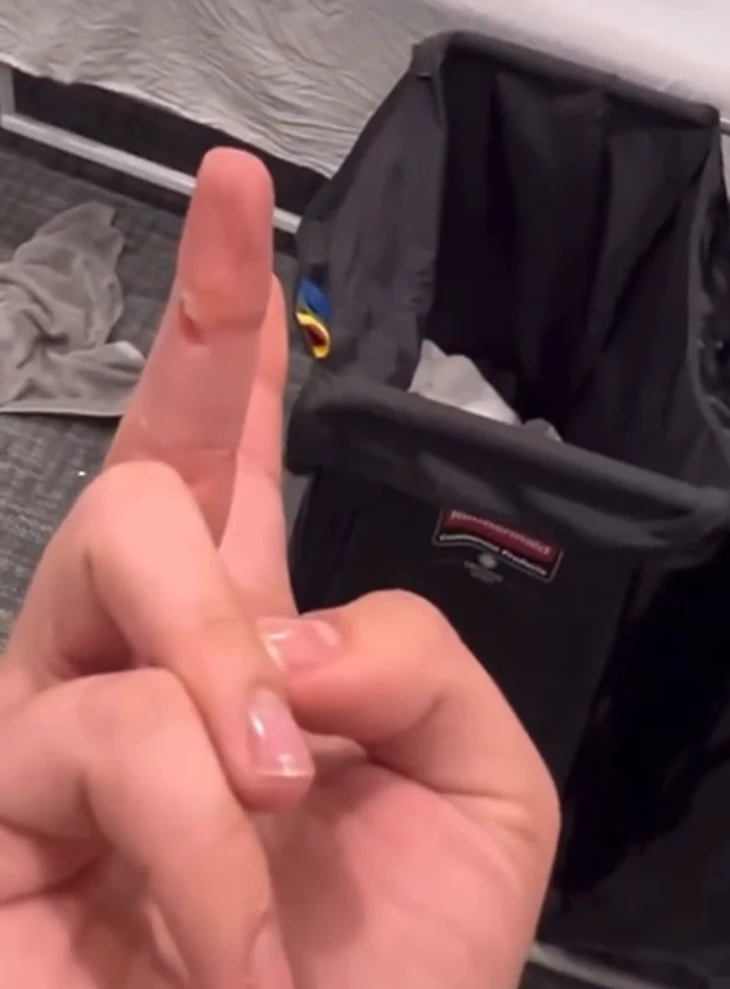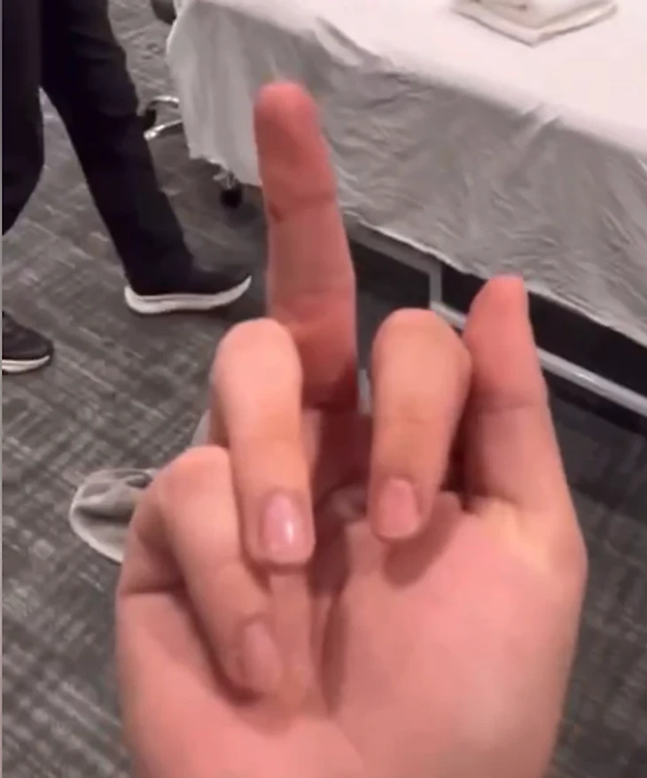 Закончилось видео ее смехом и кадром среднего пальца. Сложенного во всем знакомый жест.