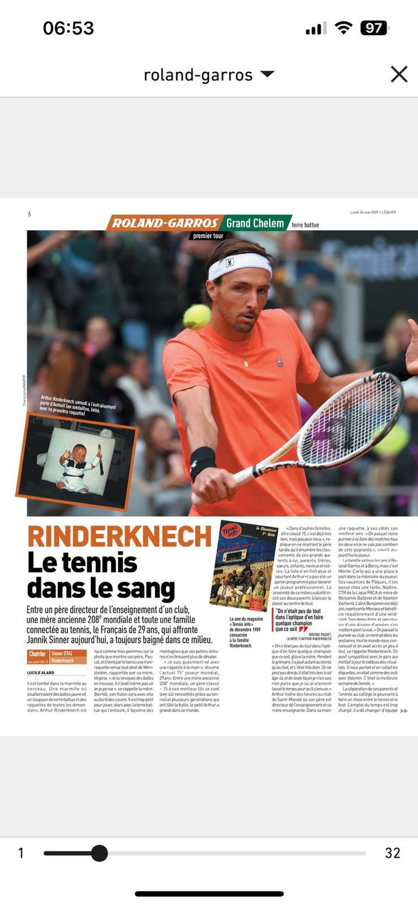 Его дед играл на Открытом Чемпионате Франции. Его бабушка играла на Открытом Чемпионате Франции. Его отец играл на Открытом Чемпионате Франции. Его мать играла на Открытом Чемпионате Франции. Даже его бывшая жена играла на Чемпионате Франции, а еще их сын и два его племянника. А он-нет. Он был номером 35 во Франции, когда ему было 18 лет и он играл с лучшим французскими игроками 70-ых годов на местных соревнованиях. Чуть позже он стал тренером, но продолжал играть, имея хороший рейтинг, но до уровня всей своей большой теннисной семьи так и не дотянул. И тут Артюр, пошедший через Университетский теннис, Паскаль очень гордился им, когда тот преодолел порог топ-1000 в 23 года, первое очко ATP, первые квалификации на Французских турнирах. И вот к 29 годам Артюр уже игрок топ-100 и играет большие шлемы без квалификации. Его не многие знают, даже во Франции, но те, кто хотя бы соприкасался с профессиональным теннисом представляют, какая титаническая работа, какие усилия и какой талант требуются, чтобы оказаться в топ-100. После 4/0 я написал моему другу, рассказавшему мне когда-то эту историю и лично знакомому и с Артюром, и с Паскалем, что даже если эта игра закончится в 3 партиях, это все равно будет потрясающий сет. Так и получилось.