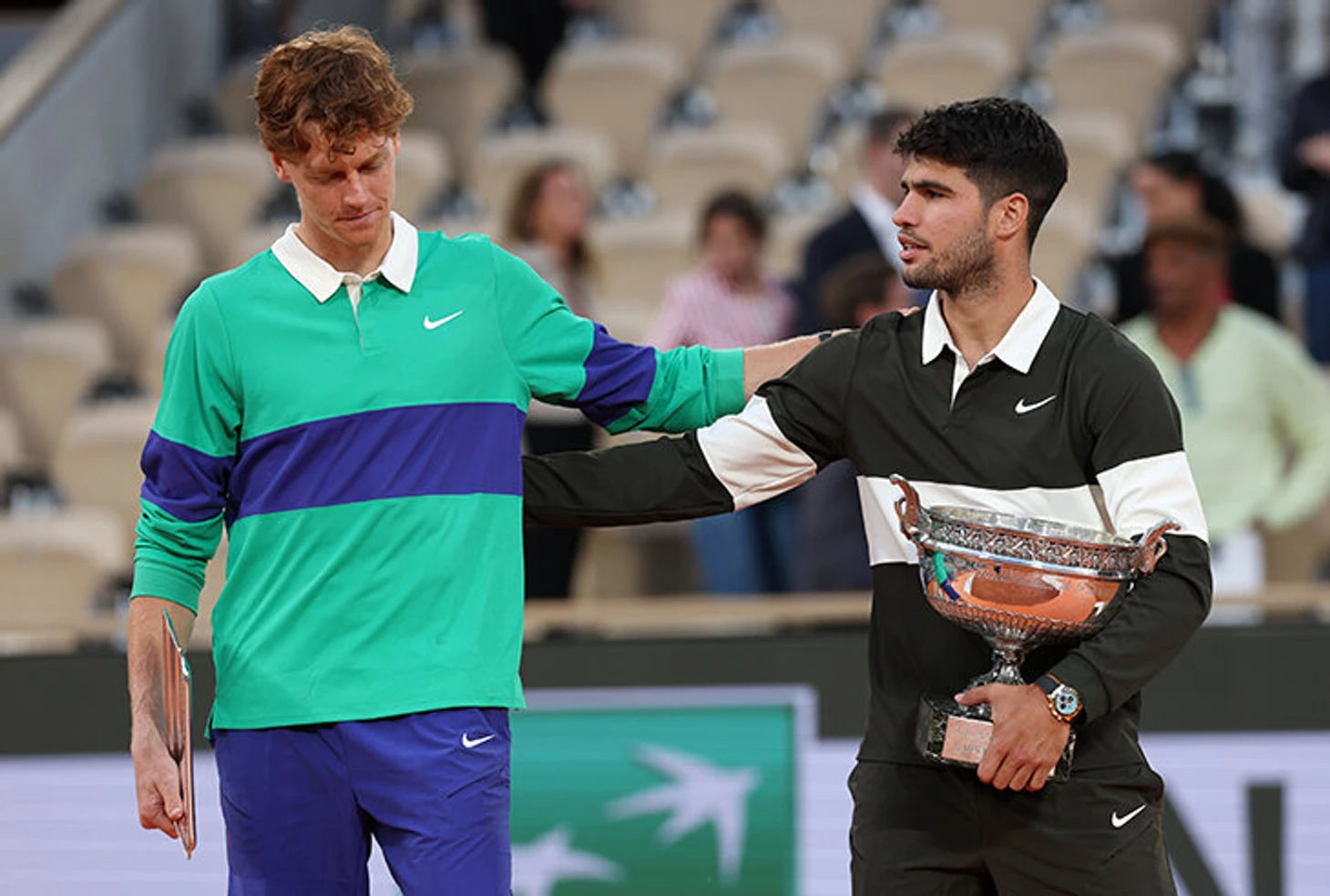 В финале «Ролан Гаррос» Карлос Алькарас обыграл Янника Синнера – 4:6, 6:7(4), 6:4, 7:6(3), 7:6(10-2).