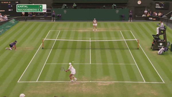 Счет в первом сете 4:4, на подаче Павлюченковой «больше». Картал после отскока мяча от троса бьет слева в большой аут – но электронные судьи промолчали.