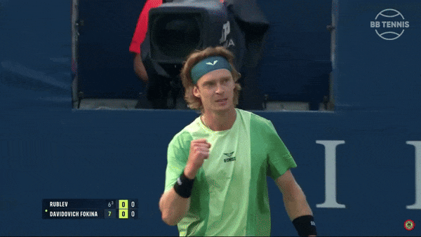 Прошлогодний финалист Андрей Рублев был в двух очках от поражения в матче против Алехандро Давидовича-Фокина, когда уступал 6:7(3), 4:5 и 0:30 на подаче. Но вовремя собрался, удержал тот гейм, провел очень цепкий тай-брейк второго сета – а дальше соперник сломался. Буквально.